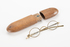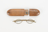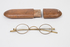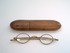 pair of steel-rimmed glasses in wooden case