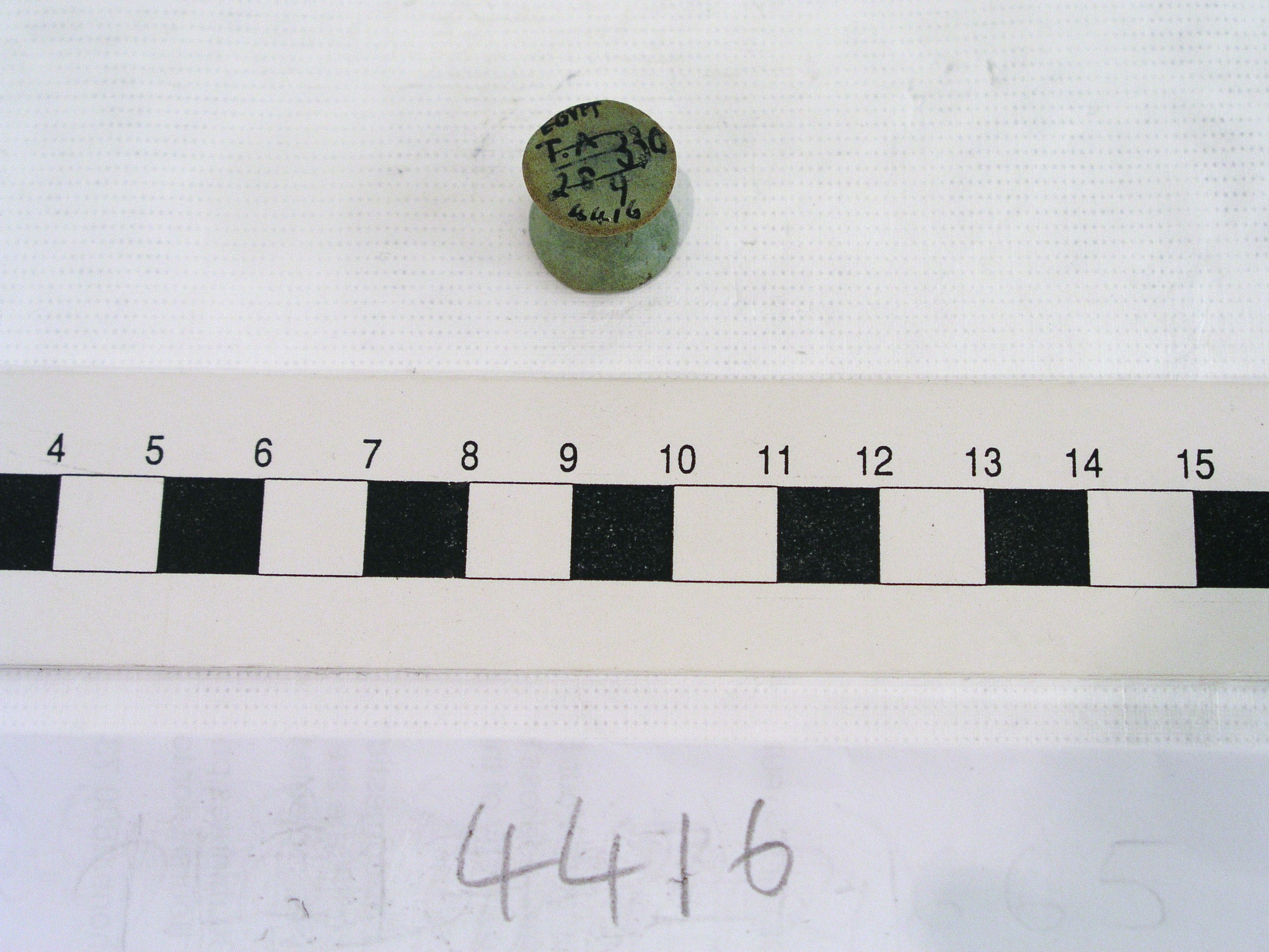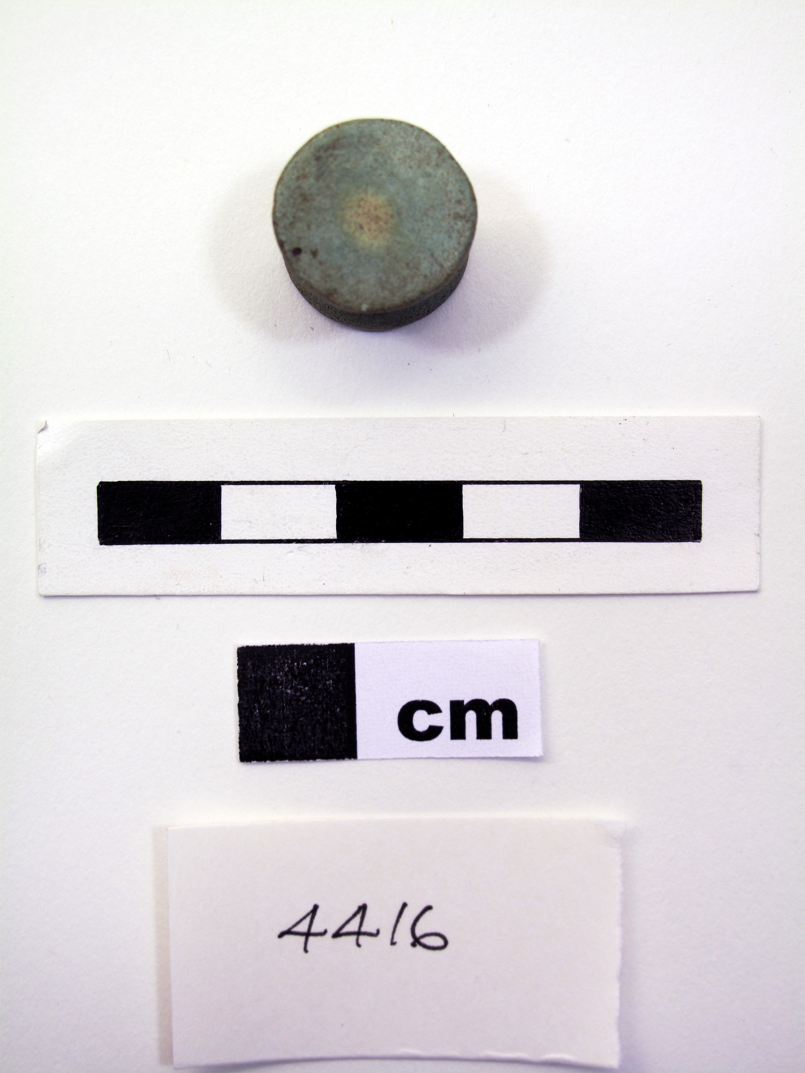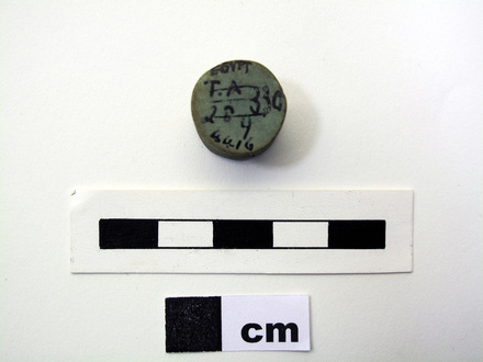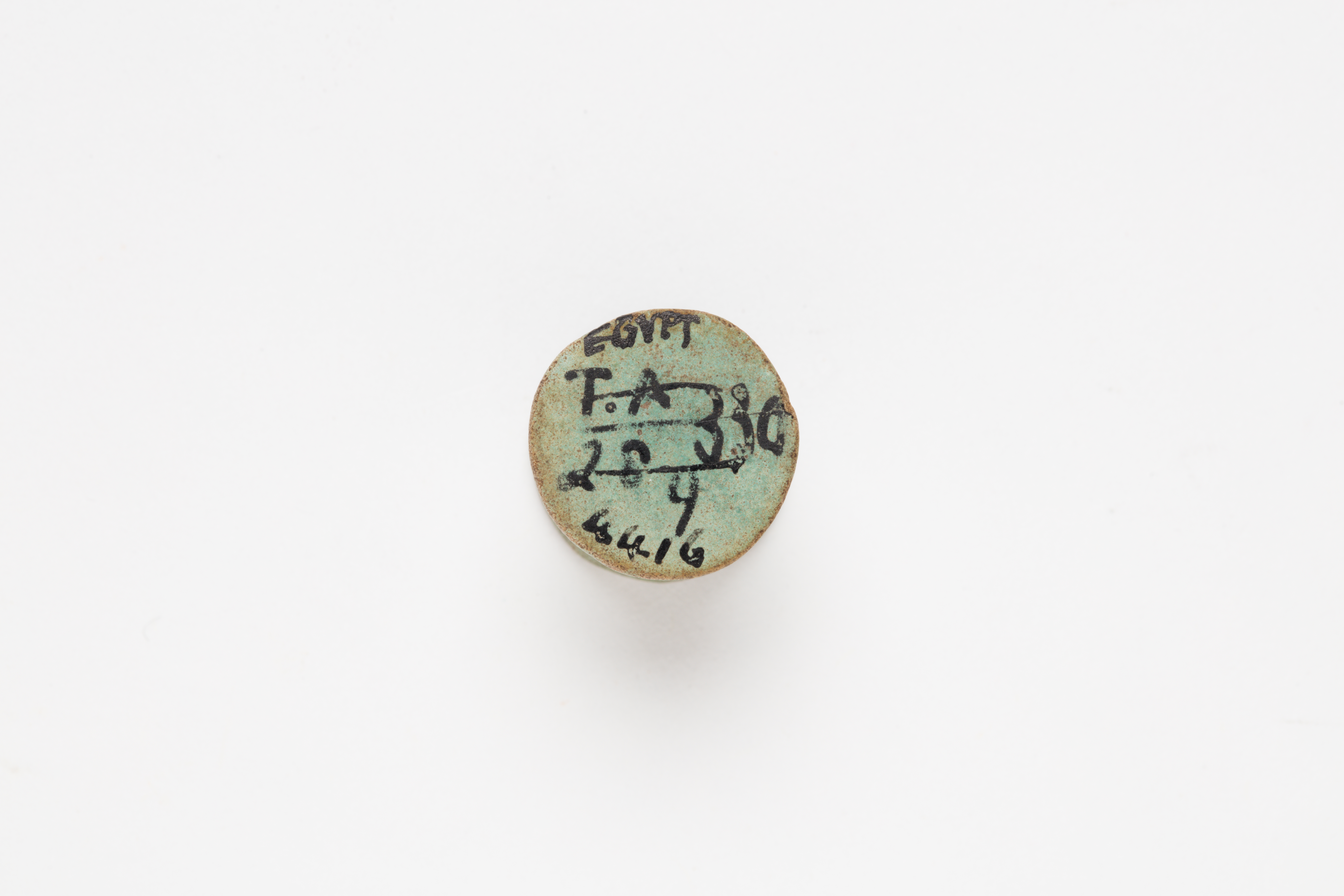 game piece. Faience game piece. Excavation number T.A. 28/9 330. From house T.35.2.
