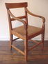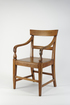 chair, New Zealand rimu attributed to the Johnny Jones whaling station / settlement, near Waikouaiti, Dunedin, pre 1840. The New Zealand timber chair is a simplified Regency period, Sheraton styled dining chair with arms and flat integral wooden seat.