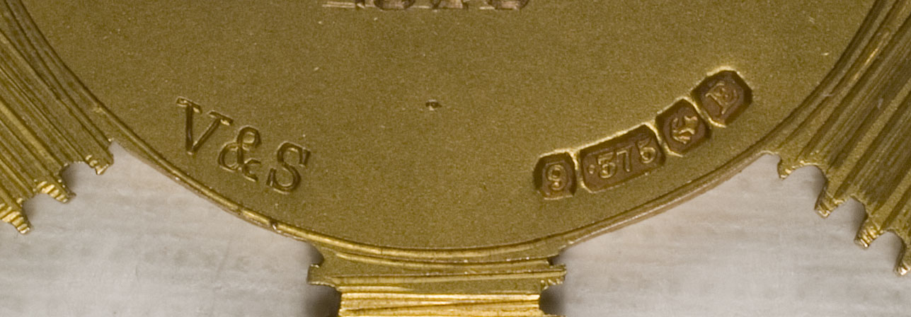 9 / .375 / [anchor on side] / E (9 carat, Birmingham, 1929)