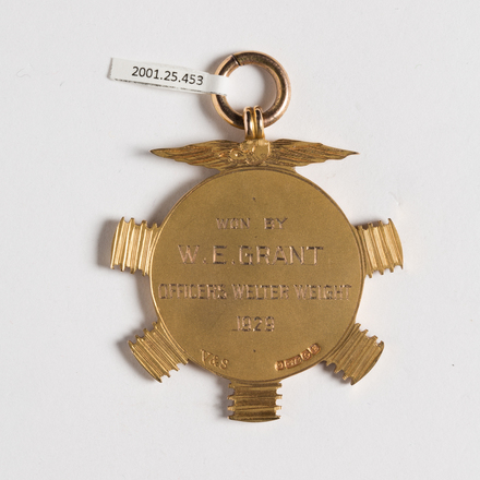 reverse: engraved: Won by / WE Grant / Officers / Welter Weight / 1928