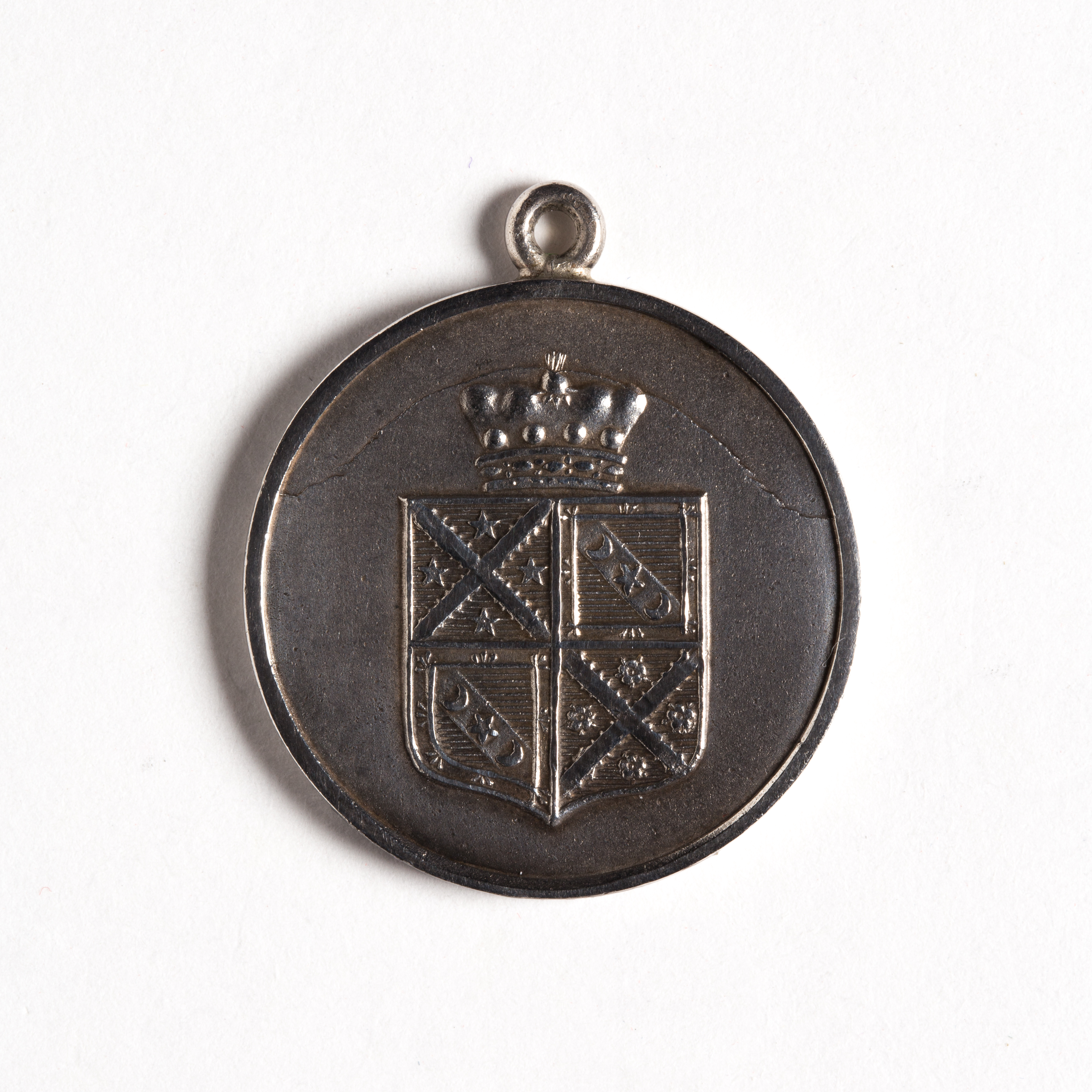 obverse: coat of arms of Napier Boys High School : shield in four quarters surmounted by crown