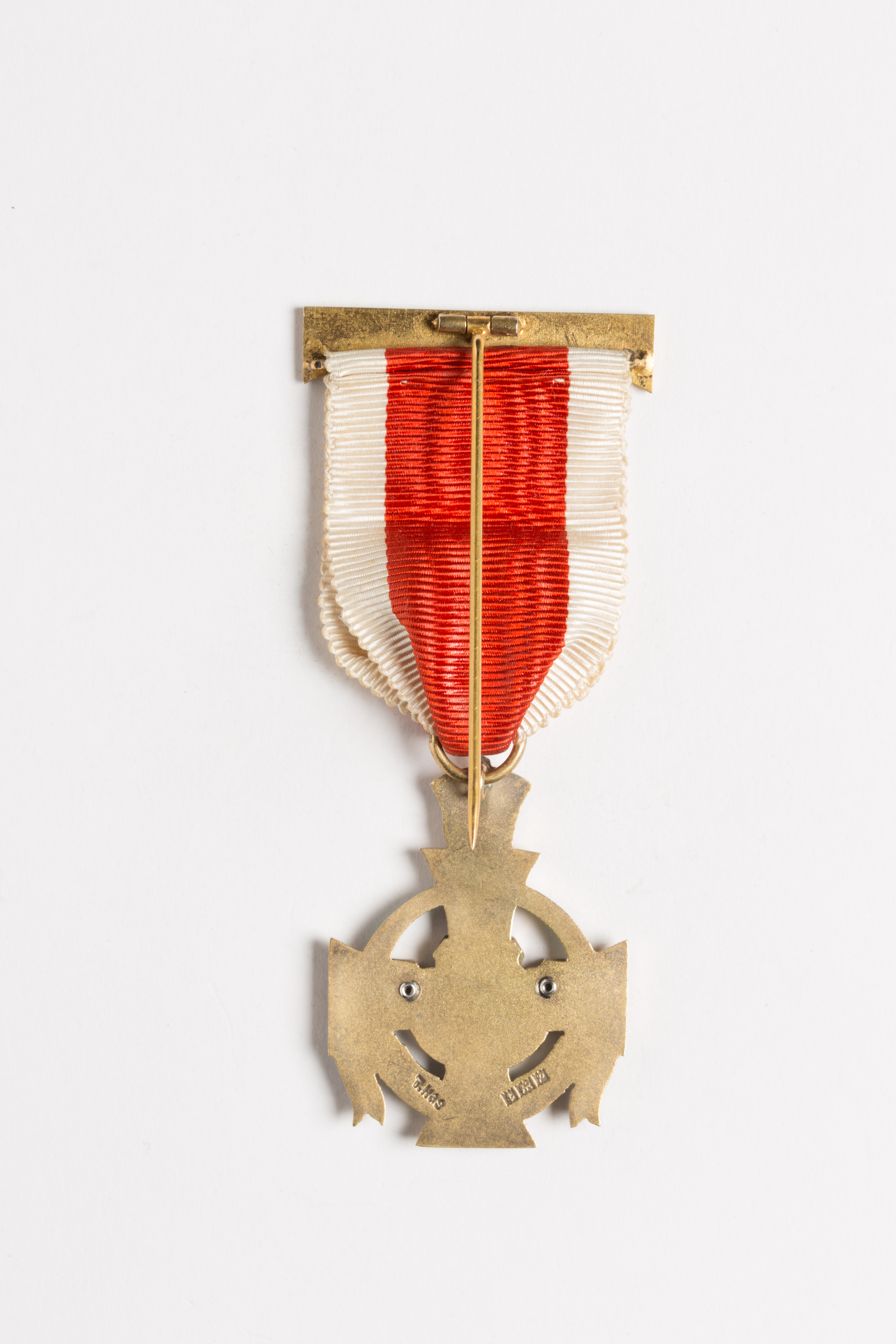 gilt and enamel cross patte, ring suspension, ribbon with brooch bar with pin fastening