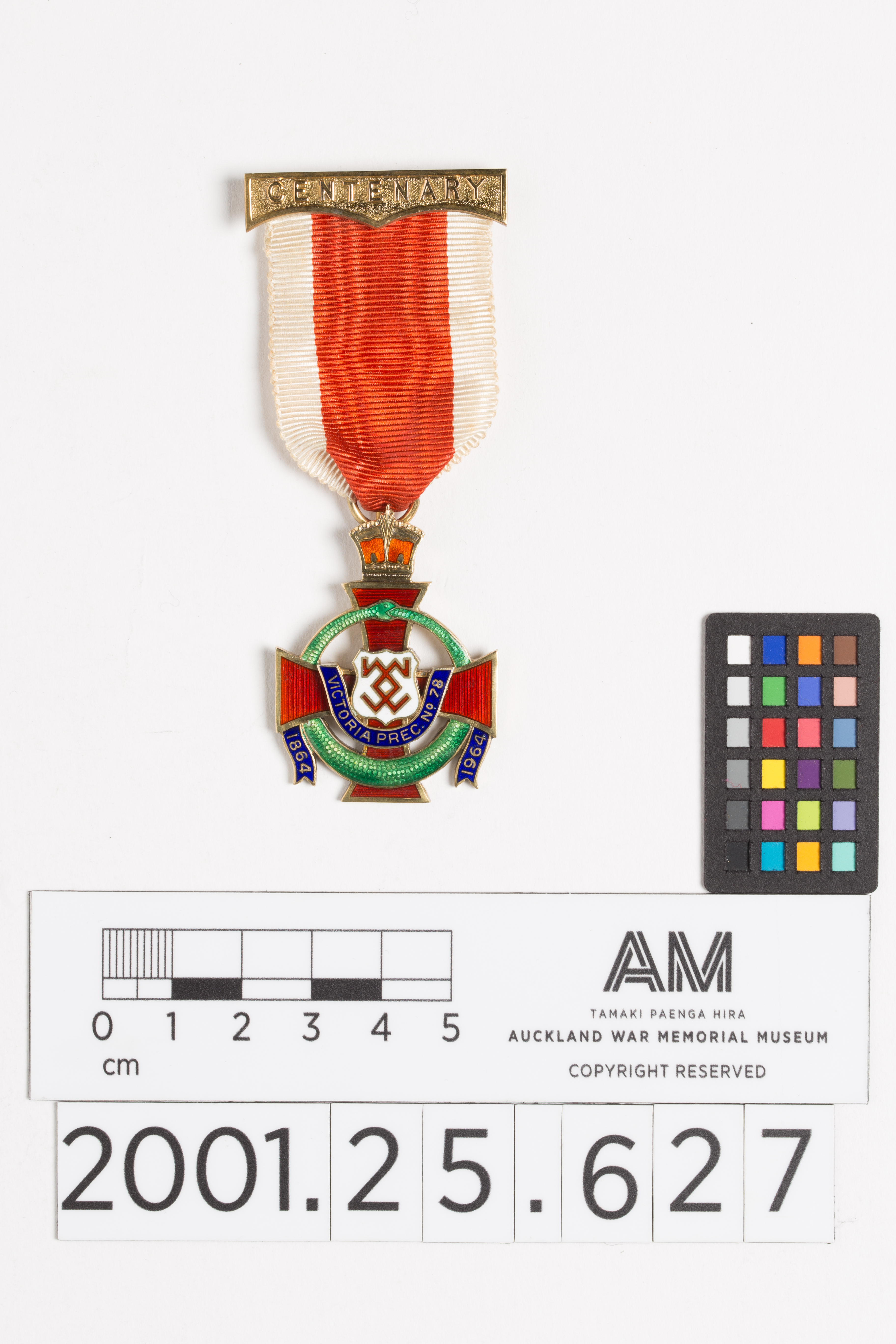 ribbon: red with white edges, brooch bar marked: CENTENARY