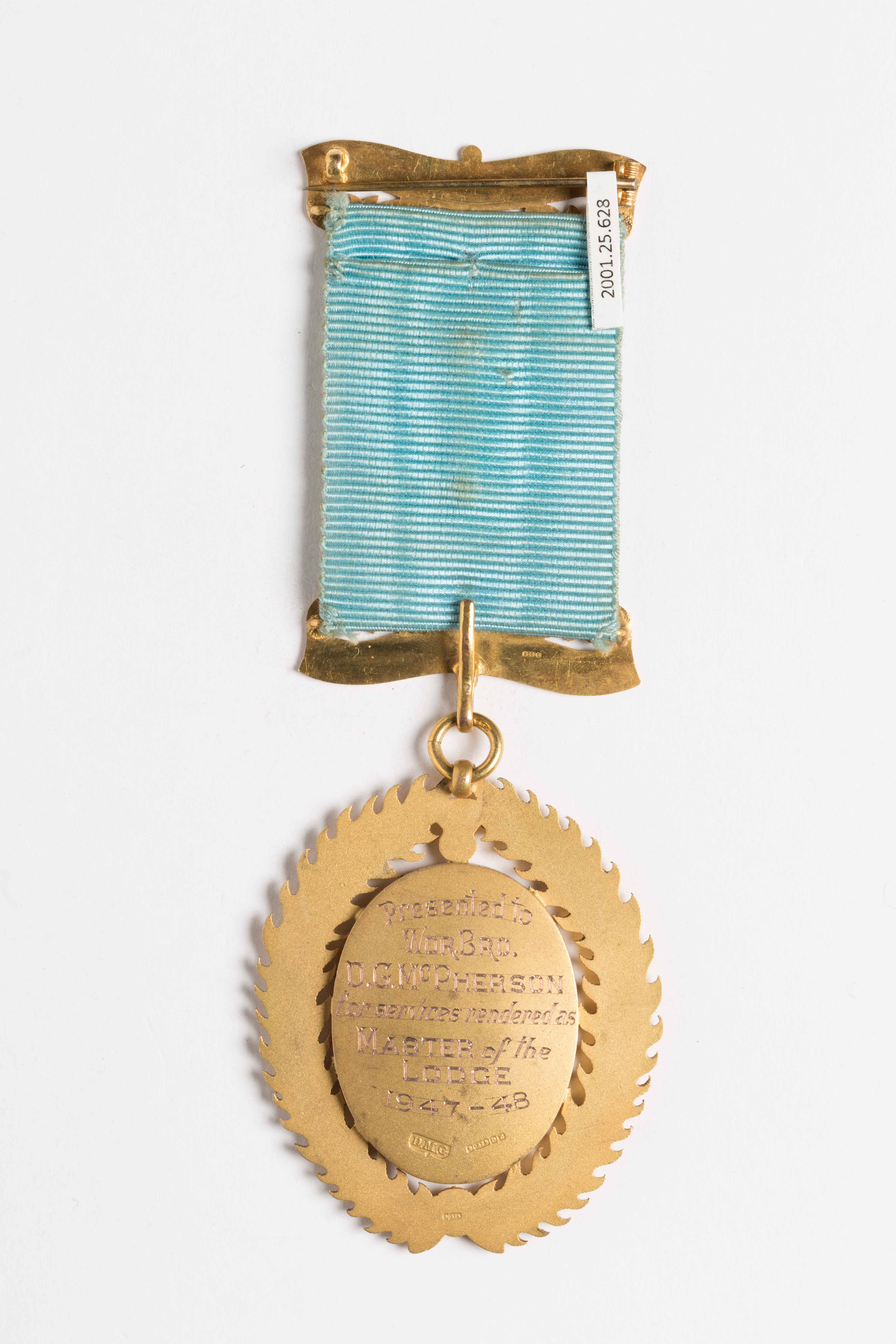 reverse: presentation text: Presented to / WOR. BRO. / D.G. MACPHERSON / For Services rendered as / MASTER of the / LODGE / 1947-48.