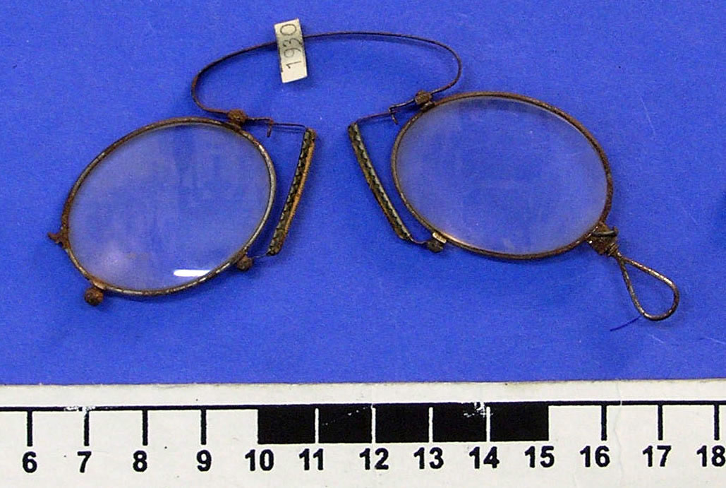 "One pair of pince-nez; part of collection of articles brought to N.Z. by Mr & Mrs Francis Tapp who arrived in Auckland by the troopship 'Oriental Queen' on September 17th 1849 " [ocm1921-1935]