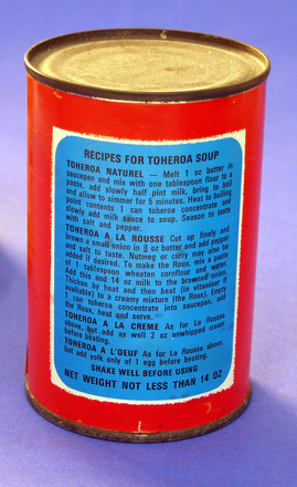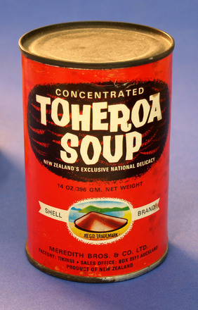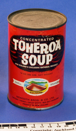 unopened can of 'Concentrated Toheroa Soup', Meredith Brothers & Co Ltd, Auckland