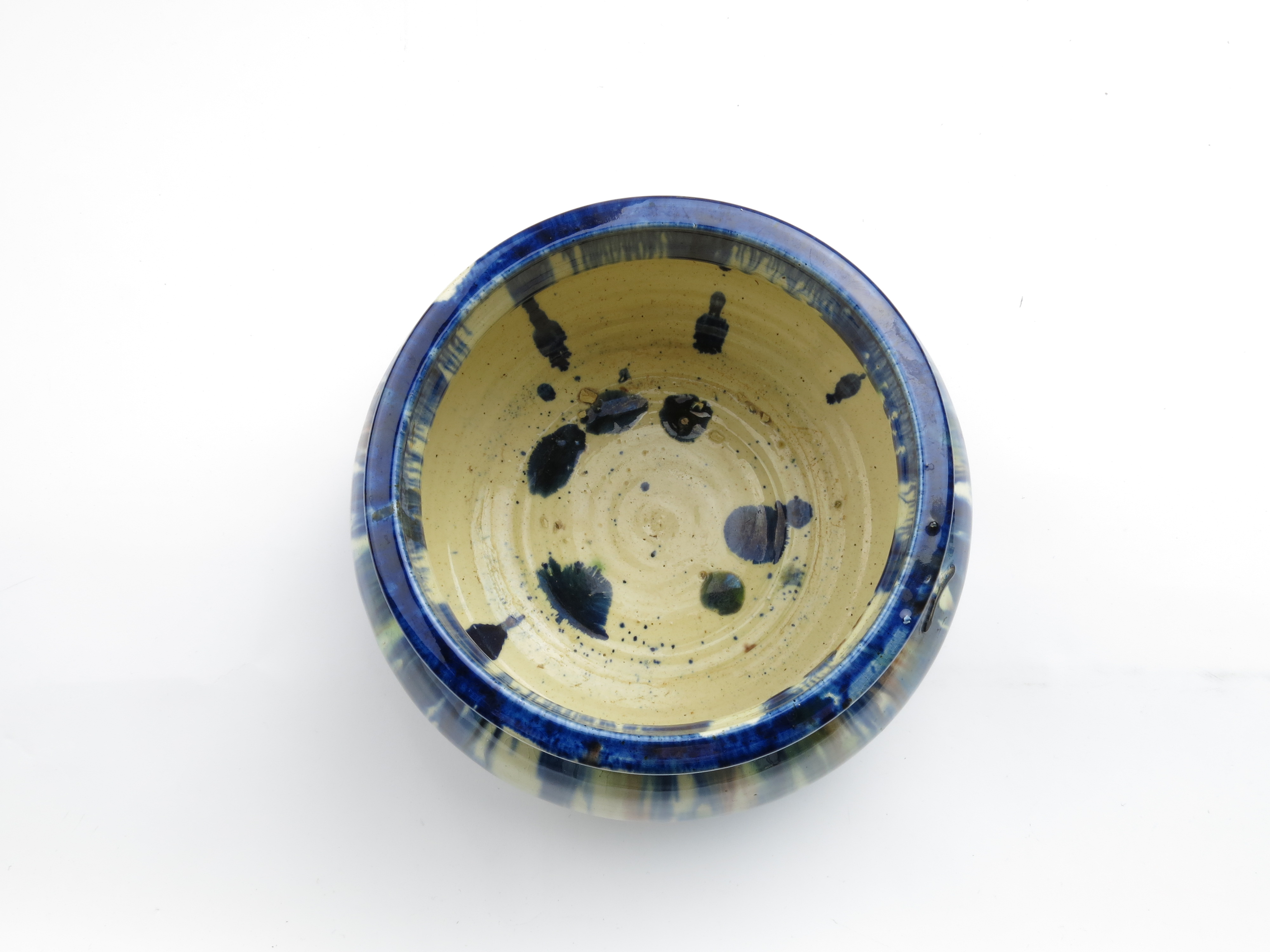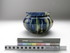 bowl; blue glaze with red and green glaze detail; complete