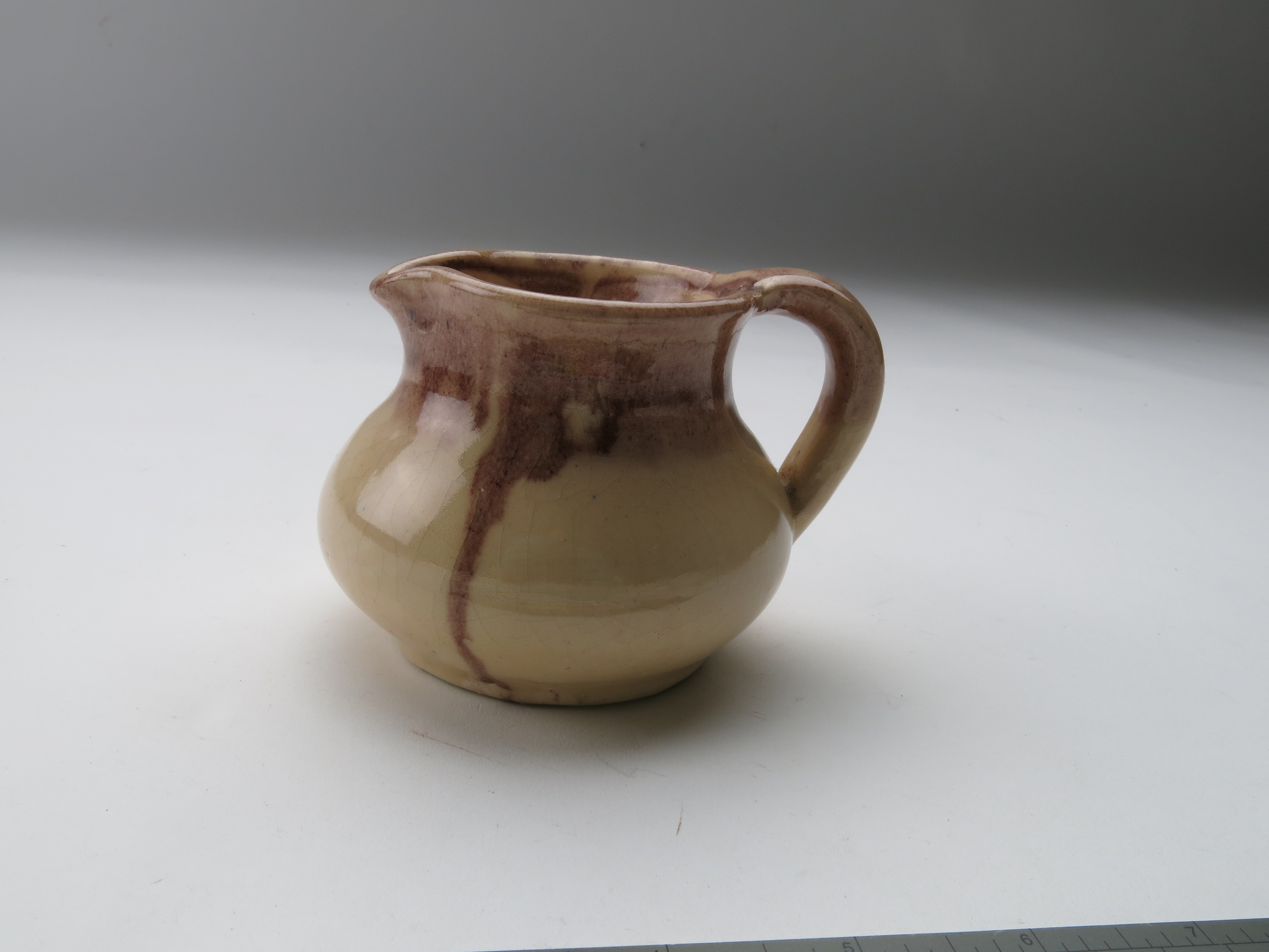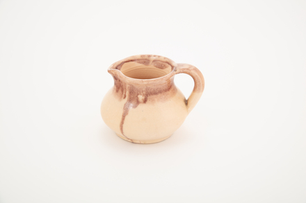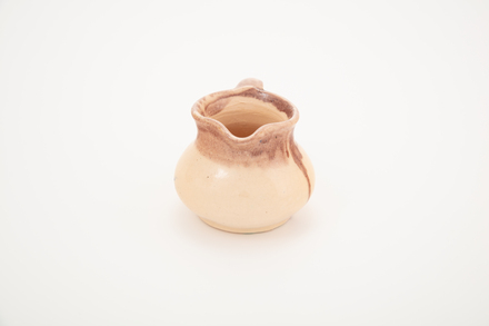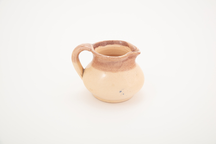 jug; domestic ware; pink; red; glazed; complete