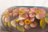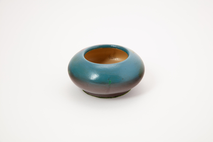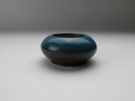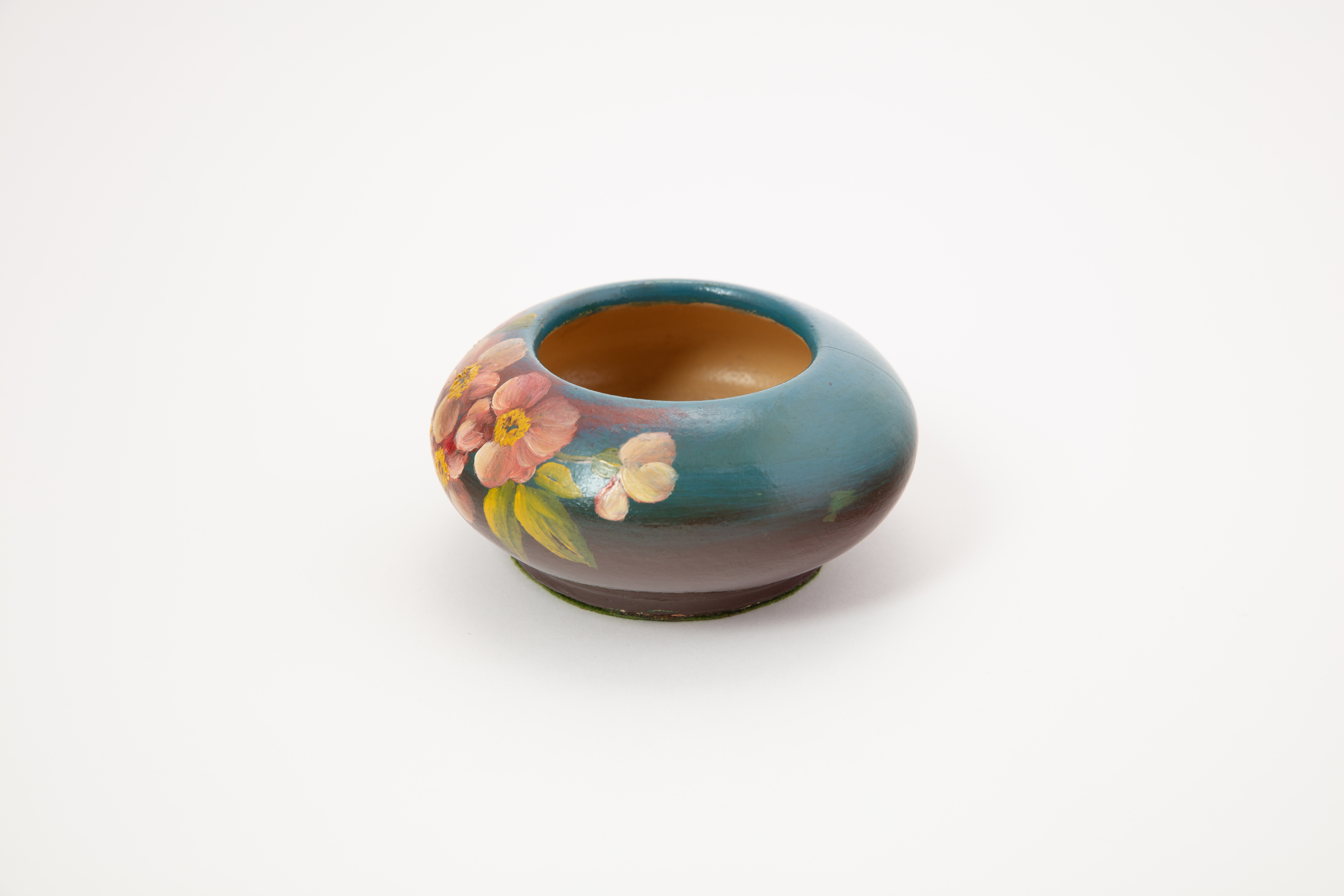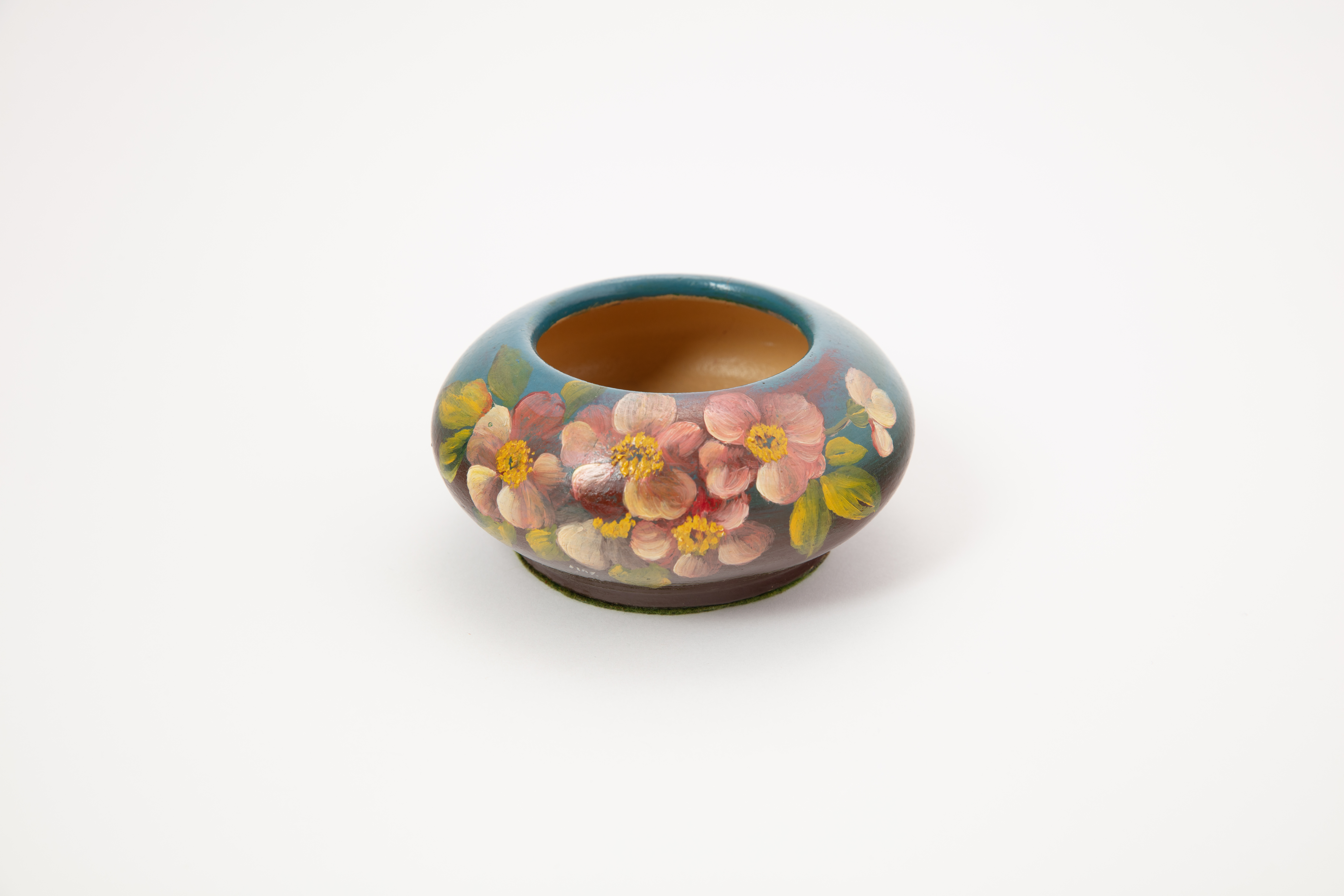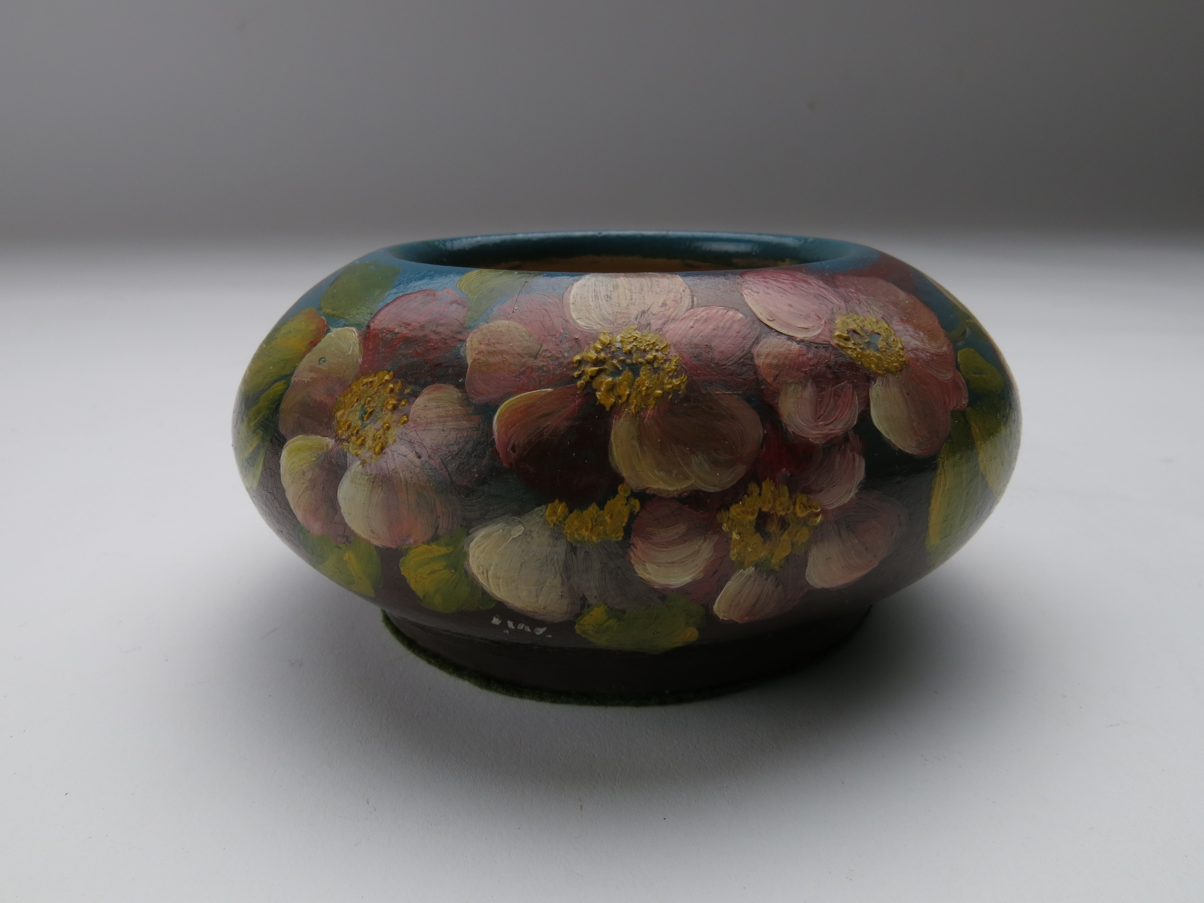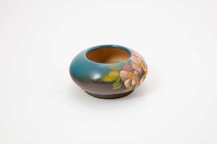 vase; low; hand painted flowers; glazed; complete