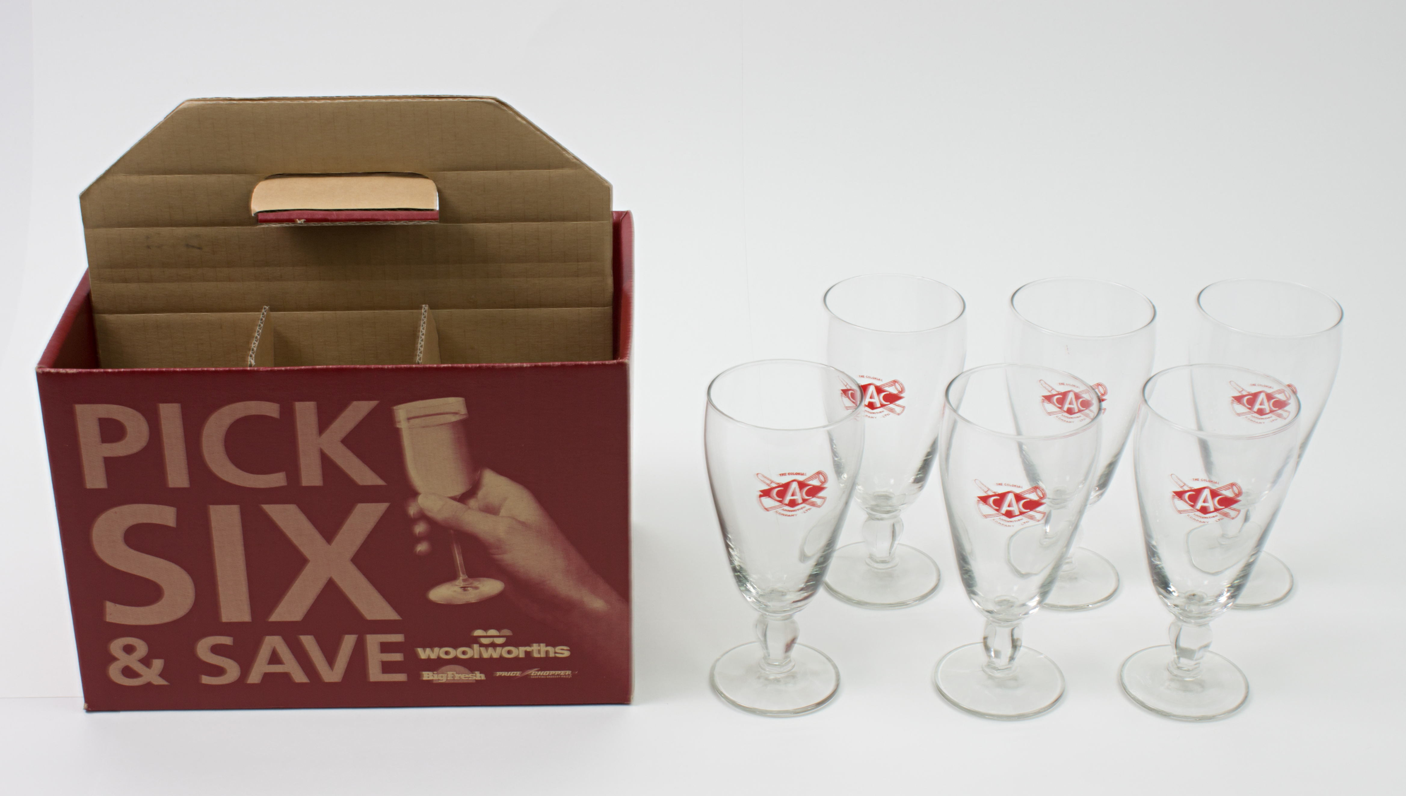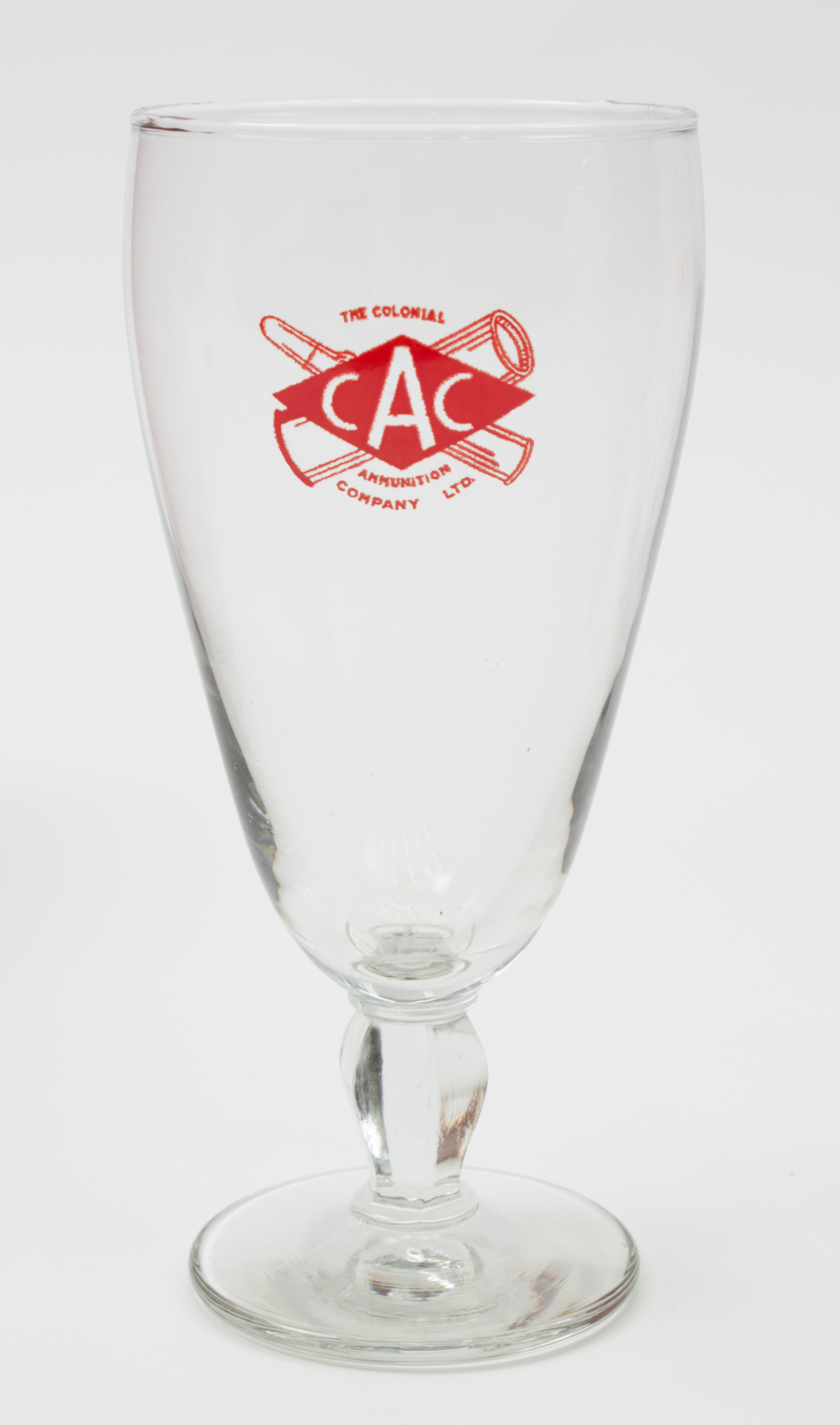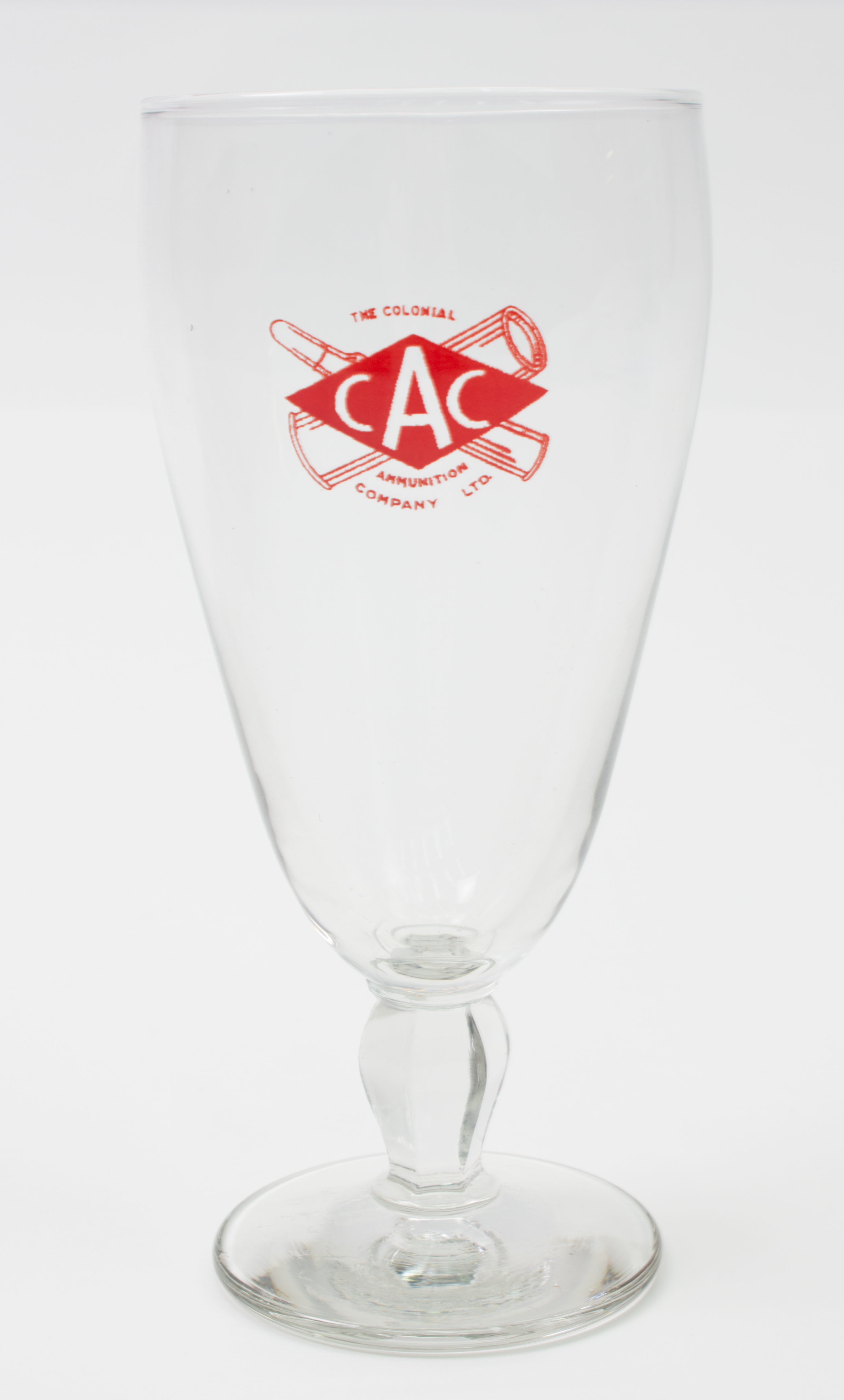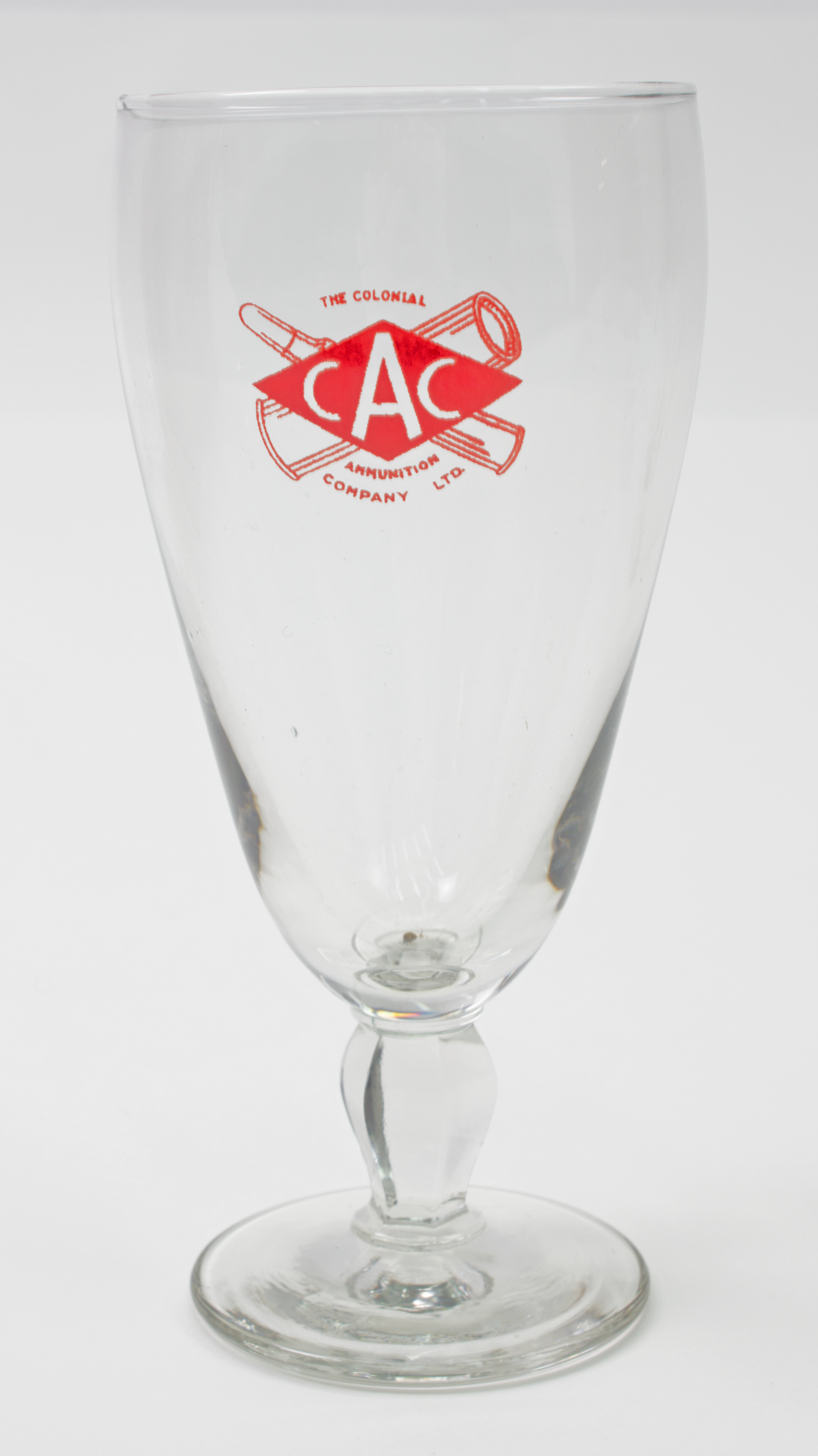 Set of six Colonial Ammunition Company promotional glasses, circa 1950-60