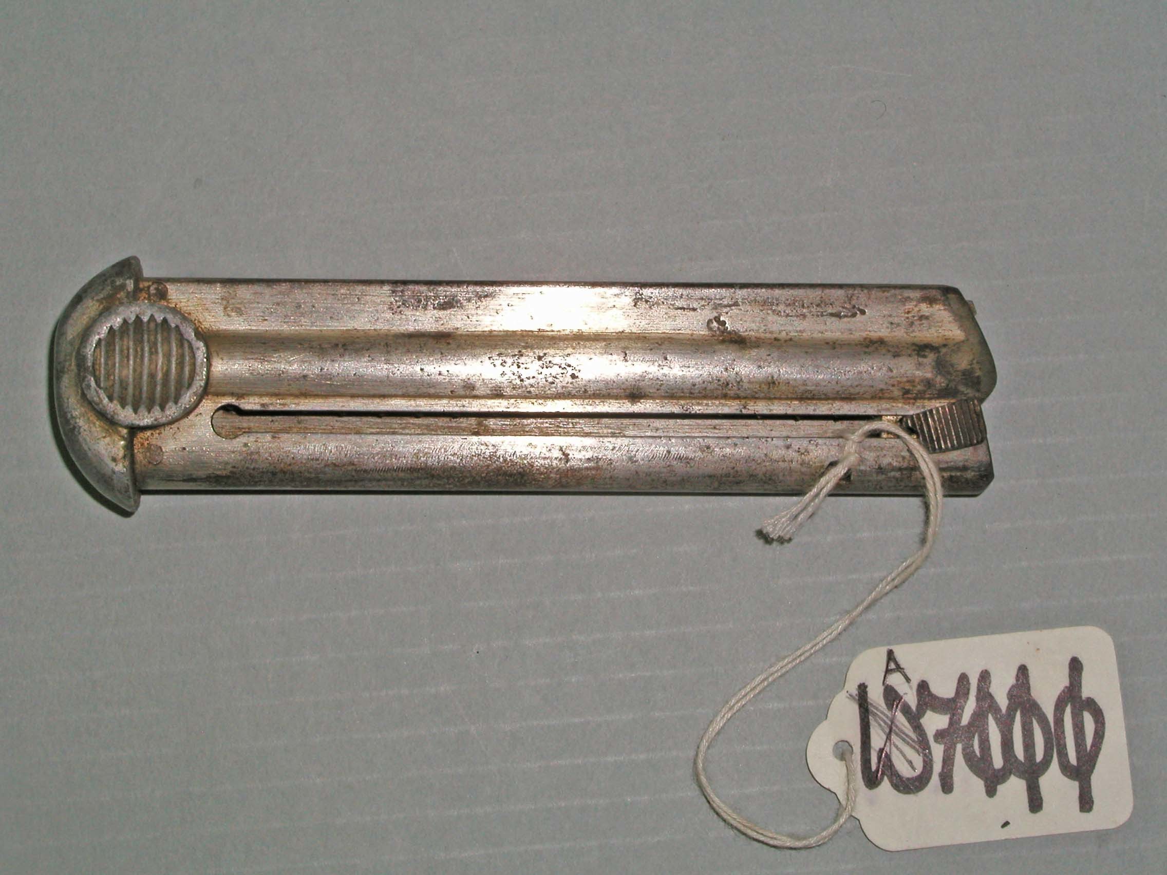 Nambu Pistol: Elements of many European designs seen (or imagined) in the design of this recoil operated pistol credited to Kijoro Nambu.The earliest Nambu is said to date from 1904 - featured raked grip containing detachable box magazine, and a return spring in a separate chamber made as an integral element of the receiver; spring chamber offset to left to allow a pivoting strut to lock the frame and receiver together at the instant of firing. Nambu pistols were made in 2 sizes (the 8mm Model A and the 7mm Model B). By 1927 the basic Nambu pistol had been superseded in military service by the simplified Taisho 14th Year Type Pistol of 1925. The principal change lay in the introduction of two return springs and a straight-sided grip. Guns of this modified type made in quantity by Nambu-Seisakusho (renamed Chuo Kogyo KK in 1936), and the government factories in Koishikawa, Nagoya and Kokura until the end of WW2.
