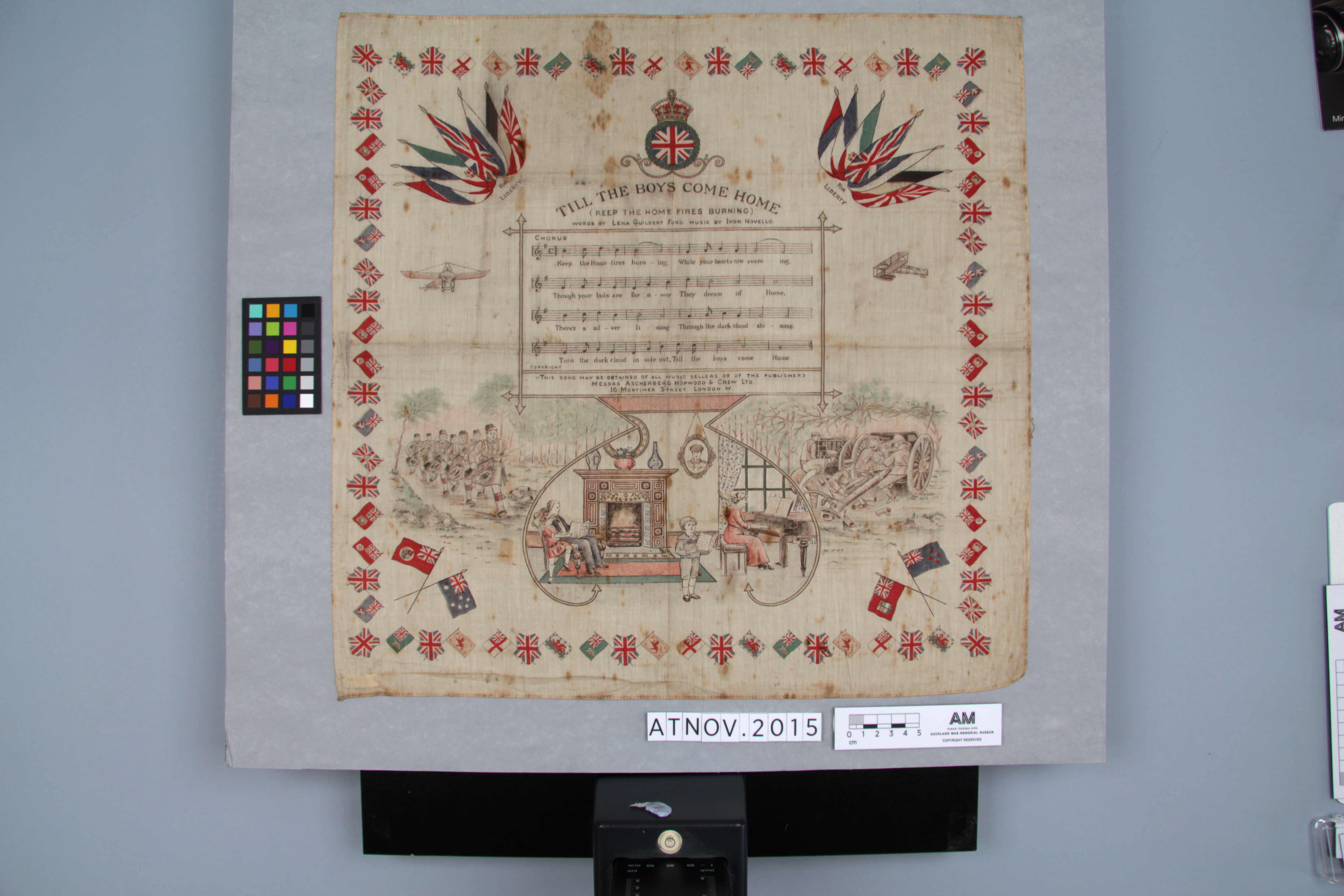 printed souvenir cloth: Keep the Home Fires Burning, WW1